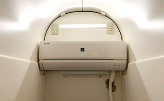 中にエアコンとリモコンが設置してありますので、ご自身で快適な室温に調整していただけます。